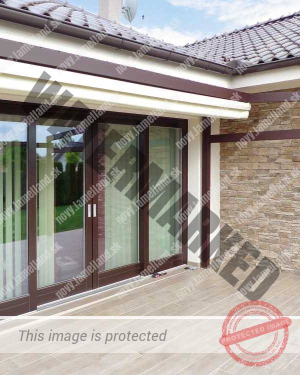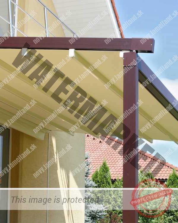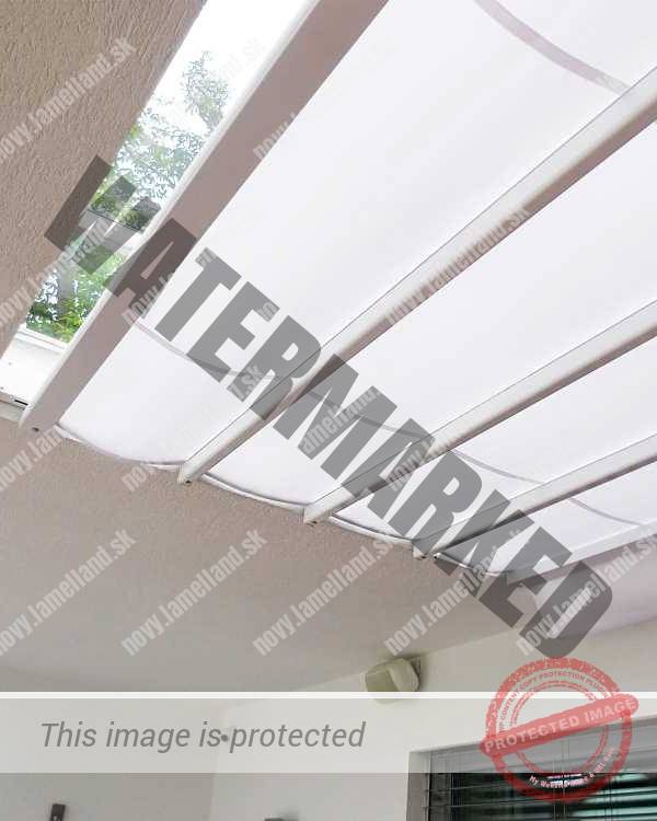 Textilné tieniace systémy sa vyznačujú rozmanitosťou konštukčného aj farebného prevedenia. Väčšinou sa montujú na pevnú konštrukciu drevenej alebo hliníkovej pergoly. Ako tieniaci materiál sa používa PVC tkanina. Hlavnou výhodou je možnosť stiahnutia látky v prípade, že tienenie už nie je potrebné. Kombináciou rôznych systémov sa dajú prekryť aj bočné steny, čo je výhodné najmä pri veternom počasí.