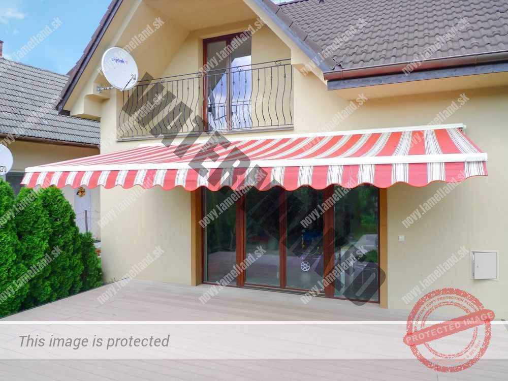 - Látka: Soltis, PVC (maximálny rozmer markízy s týmito látkami je 4 000 × 3 000 mm)