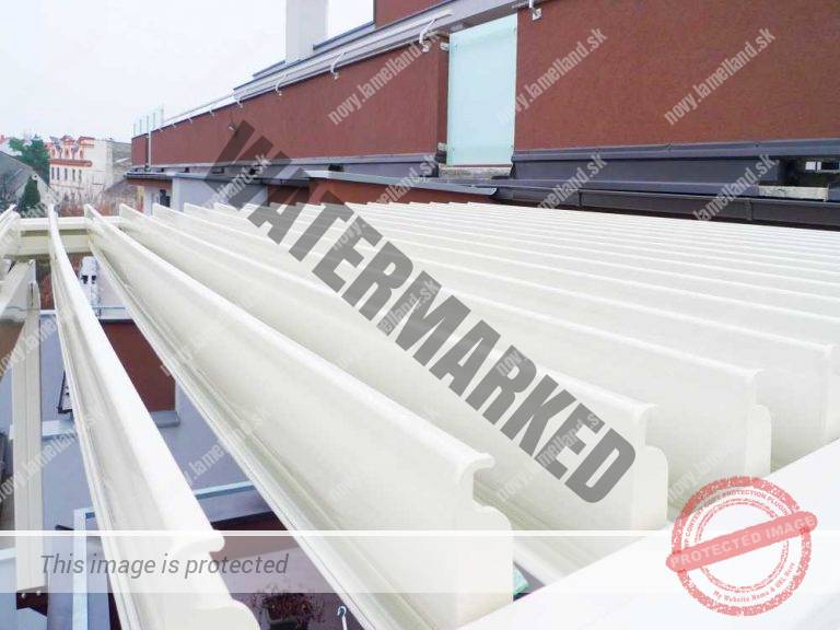- Odtokové zľaby (predný a bočné): hliníkové, farba biela – RAL 9010, béžová – RAL 1013
