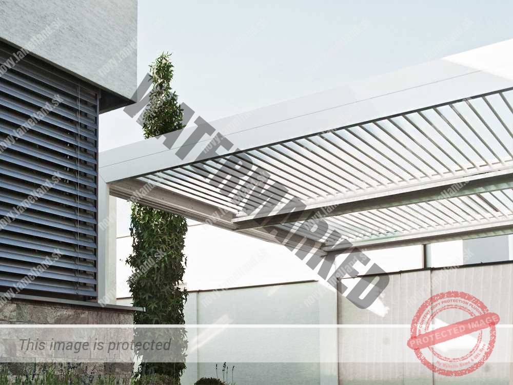 Tieniaci systém Flap dodávame samostatne alebo v kombinácii s nosnou konštrukciou Panoramica. Robustné hliníkové lamely sú uložené v ráme a po zaklopení vytvárajú kompaktnú striešku. Systému stačí pre dokonalý odtok dažďovej vody len mierny sklon.