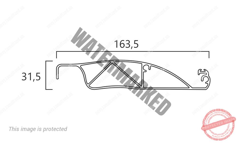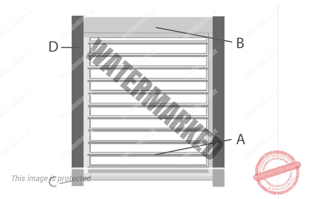 - Lamela: hliníková, rozmer 163,5 × 31,5 mm, farba biela – RAL 9010, béžová – RAL 1013