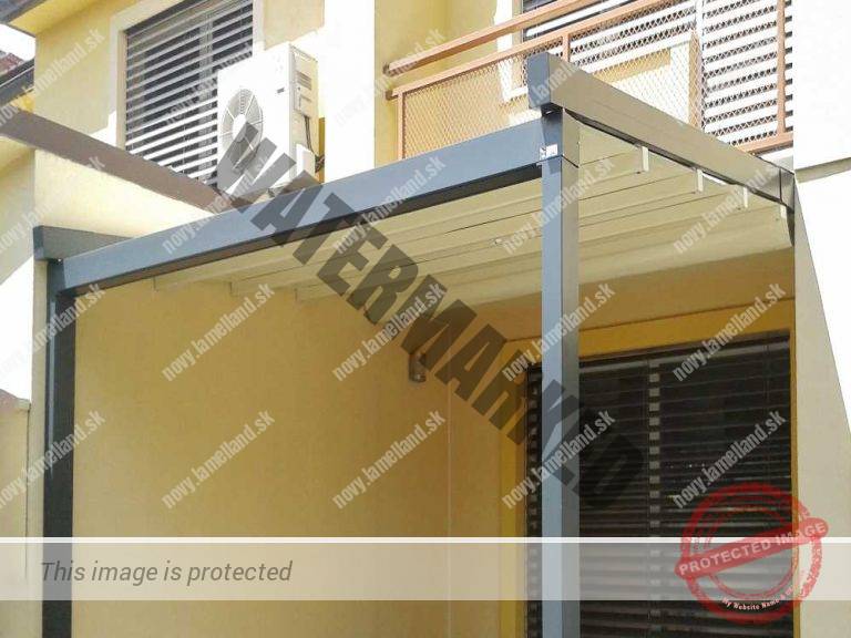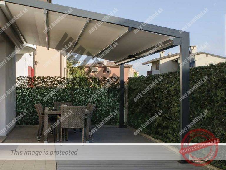 Elegantné spojenie konštrukcie pergoly a tieniaceho systému Vás nadchne svojou jednoduchosťou a čistým dizajnom. Konštrukcia pergoly umožňuje odvod dažďovej vody cez predné stĺpiky, takže nie je nutné riešiť dodatočné odvodnenie pomocou zľabov. Minimálne odporúčané spádovanie systému je 10%. Ako tieniaci materiál sú použité špeciálne nepremokavé a nehorľavé textílie na polyesterovej báze, pokryté nánosom PVC. Vonkajšia strana je upravená acrylátovou vrstvou zabraňujúcou usádzaniu prachu a nečistôt z ovzdušia. Pri nedostatku svetla je možné použiť ako časť tieniaceho materiálu priehľadné PVC, dostupné v bielej a v dymovej variante. Pergolu dodávame len s automatickým ovládaním. Konštrukcia je k dispozícii v niekoľkých farbách RAL.
