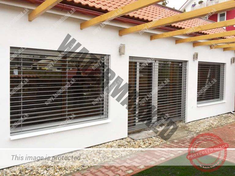 - Vedenie žalúzie: hliníkové, vodiaca lišta jednoduchá 18 × 20 mm, jednoduchá do ostenia 18 × 20 mm, zaomietacia lišta bez puzdra, dvojitá vodiaca lišta, farba elox, RAL 9006, alt. oceľové lanko