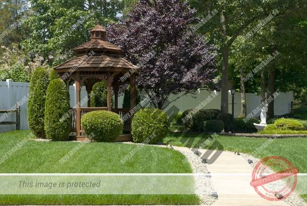 Nielen o záhradku, ale aj o okolie pergoly sa treba starať a pravidelne ho upravovať. Ak chcete mať okolo nej takéto dokonale ostrihané kríky, budete ich musieť pravidelne posielať ku kaderníkovi. Výsledok však určite stojí za to!