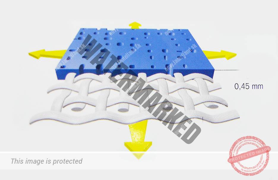 Nezanedbateľné sú aj jeho tepelnoizolačné vlastnosti. Dokáže zadržať až 90 % slnečného tepelného žiarenia a usporiť tak až 40 % nákladov na vykurovanie.soltis prierez materialom