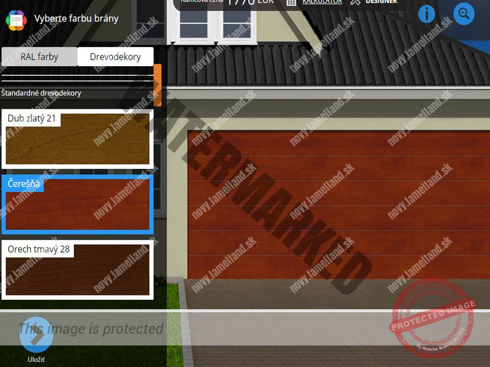 6. Vyberte farbu brány z odtieňov RAL alebo imitácií dreva